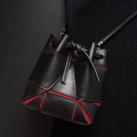 Mini Bucket Bag - Black with red details