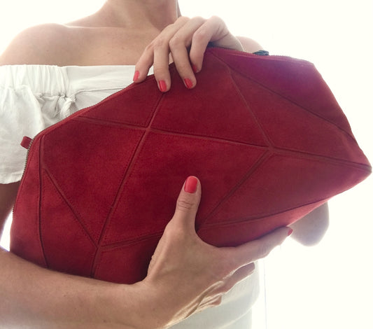 Foldable Clutch - Origami bag - Red suede leather